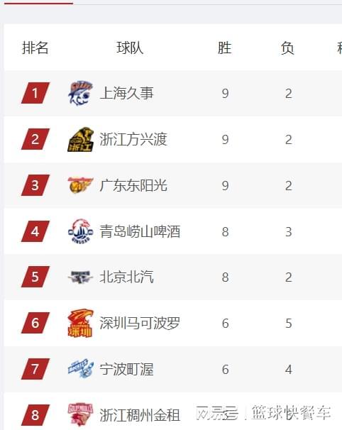 排在积分榜第7名的是黑马宁波队,截止到目前,他们的战绩是6胜4负,由于少赛一轮的缘故,宁波队在排名上稍微吃亏。而积分榜第8名则属于浙江队,在经历了赛季初的低迷后,浙江队已经渐入佳境,这一轮爆冷绝杀广东队后,他们的战绩变成5胜6负,排在积分榜第8名。积分榜第9名则属于山西队,他们的战绩则是5胜5负。四冠王辽宁队,他们的排名又下滑了一个身位,以5胜5负,排在积分榜第10名。