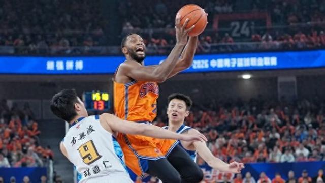 第二节,王哲林和洛夫顿的内线组合配合默契,上海男篮连续得分以43比36领先,对手被迫暂停。洛夫顿抢断发起反击,古德温投中三分球,比分变成48比38。洛夫顿和古德温再次进攻得手,主队已经以52比38领先,客队再次暂停,上半场比分为60比48。