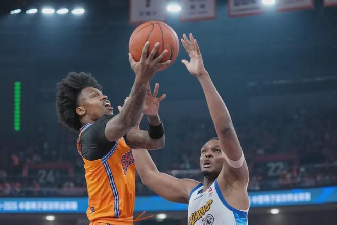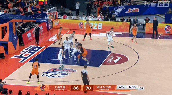 第二节,王哲林和洛夫顿的内线组合配合默契,上海男篮连续得分以43:36领先,对手被迫暂停。洛夫顿抢断发起反击,古德温投中三分球,比分变成48:38。洛夫顿和古德温再次进攻得手,主队已经以52:38领先,客队再次暂停,上半场比分为60:48。
