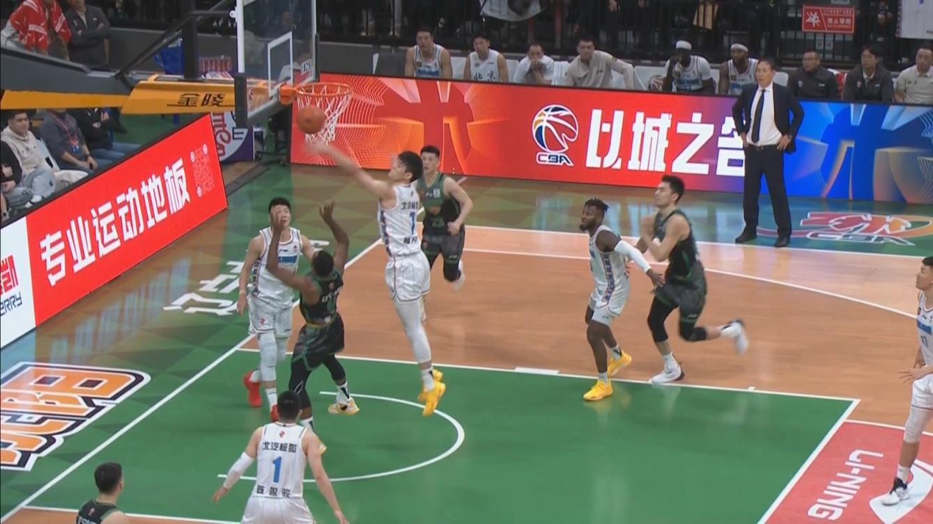曾凡博起飞欲扣 付豪凶狠犯规将其拽倒 裁判回看后普通犯规