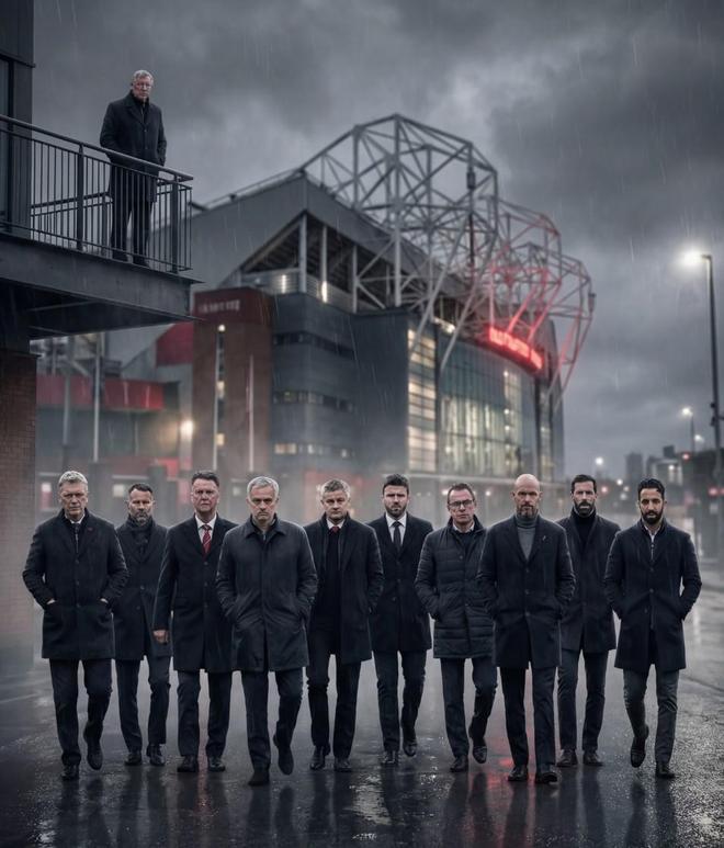 北京时间1月5日,在阿莫林从曼联下课之后,意大利名记罗马诺在社交媒体上发布了一张海报,内容为后弗格森时代曼联的10任主帅并肩在老特拉福德球场外的阴雨中前行,弗格森则在高处凝视着他们。